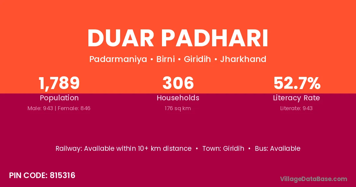 Duar Padhari village is located in the Birni Subdivision of the Giridih district in Jharkhand .