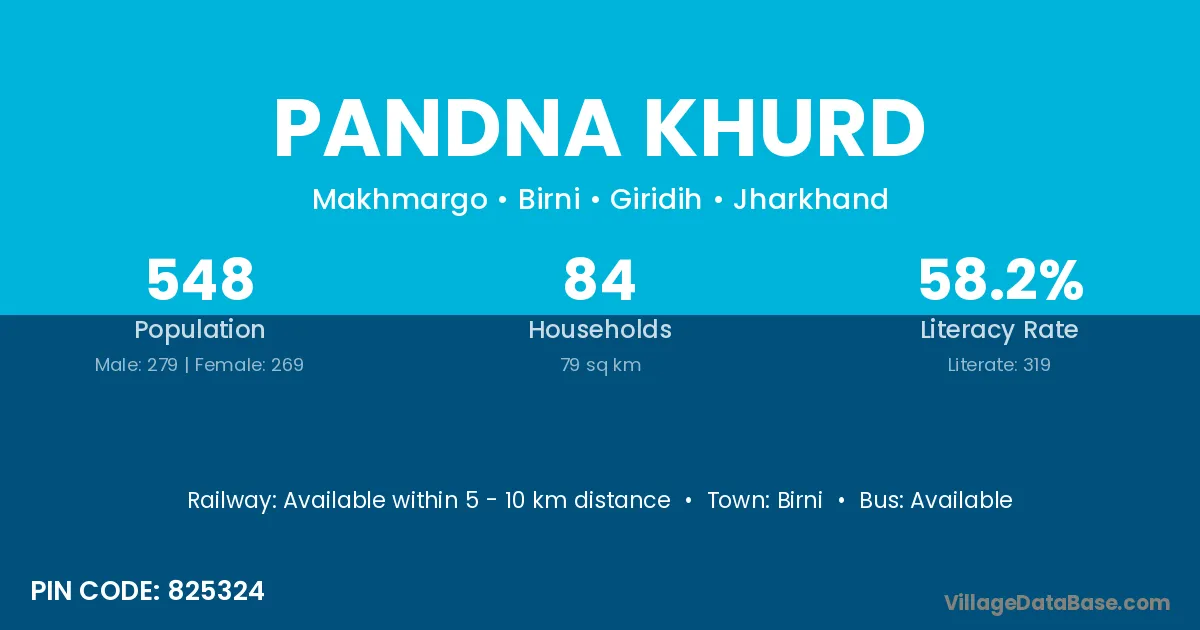 Pandna Khurd village has a total population of 548 people, of which 279 are males and 269 are females.