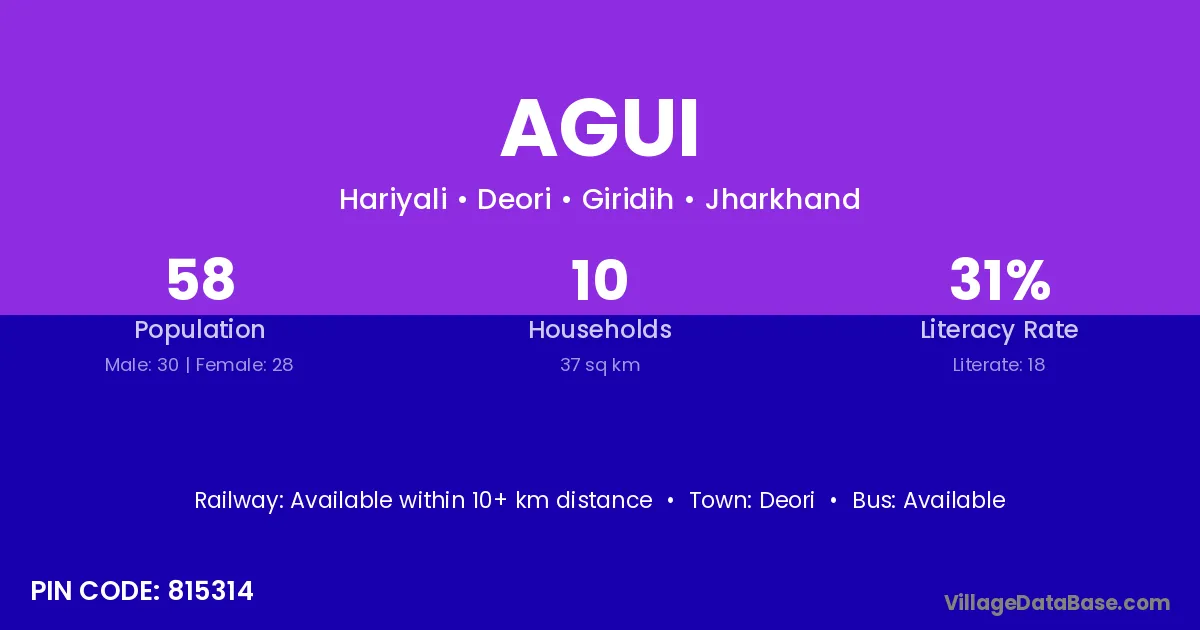 Agui village is located in the Deori Subdivision of the Giridih district in Jharkhand .