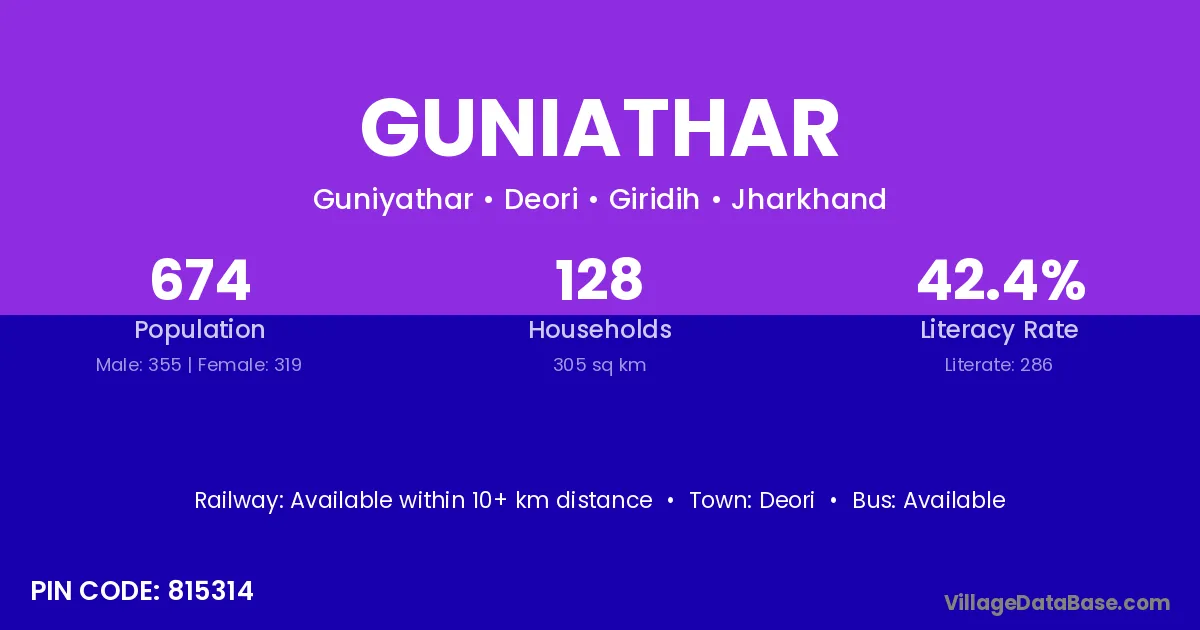 Guniathar village is located in the Deori Subdivision of the Giridih district in Jharkhand .