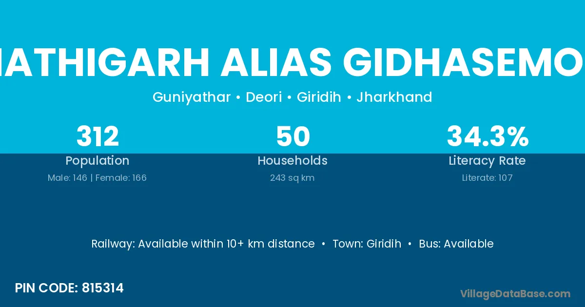 Giridih is the nearest town to Hathigarh Alias Gidhasemor village for major economic activities