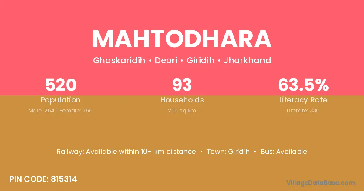 Giridih is the nearest town to Mahtodhara village for major economic activities