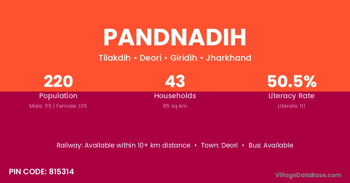 Pandnadih village has a total population of 220 people, of which 115 are males and 105 are females.