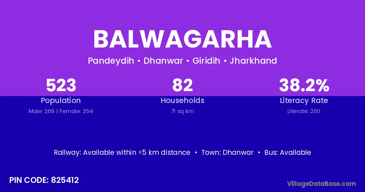 Balwagarha village has a total population of 523 people, of which 269 are males and 254 are females.