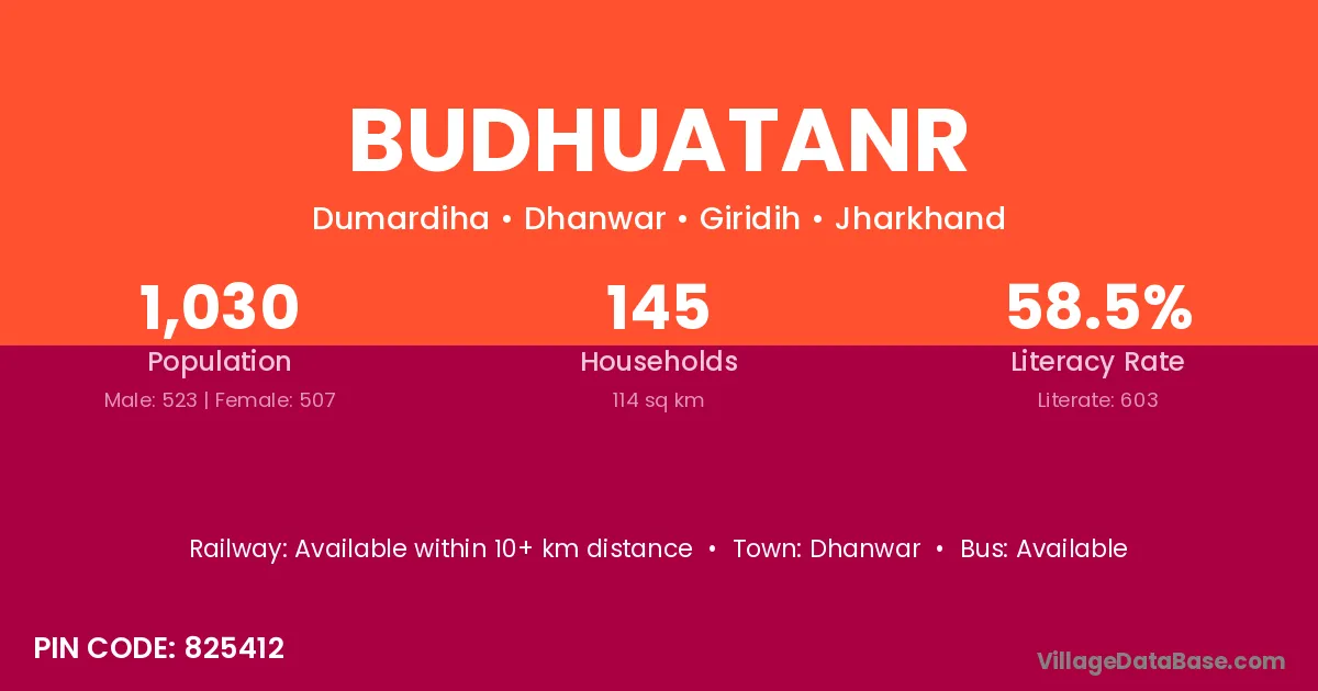 Budhuatanr village has a total population of 1,030 people, of which 523 are males and 507 are females.