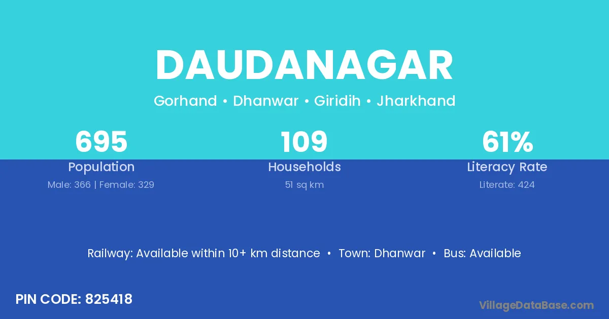 Daudanagar village has a total population of 695 people, of which 366 are males and 329 are females.