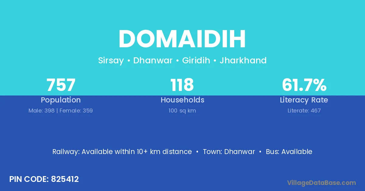 Domaidih village has a total population of 757 people, of which 398 are males and 359 are females.