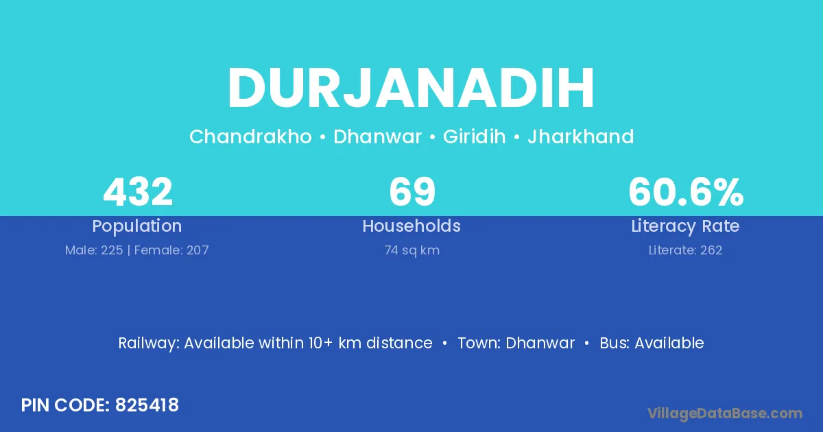 According to Census 2011 information, the village code of Durjanadih village is 825418.