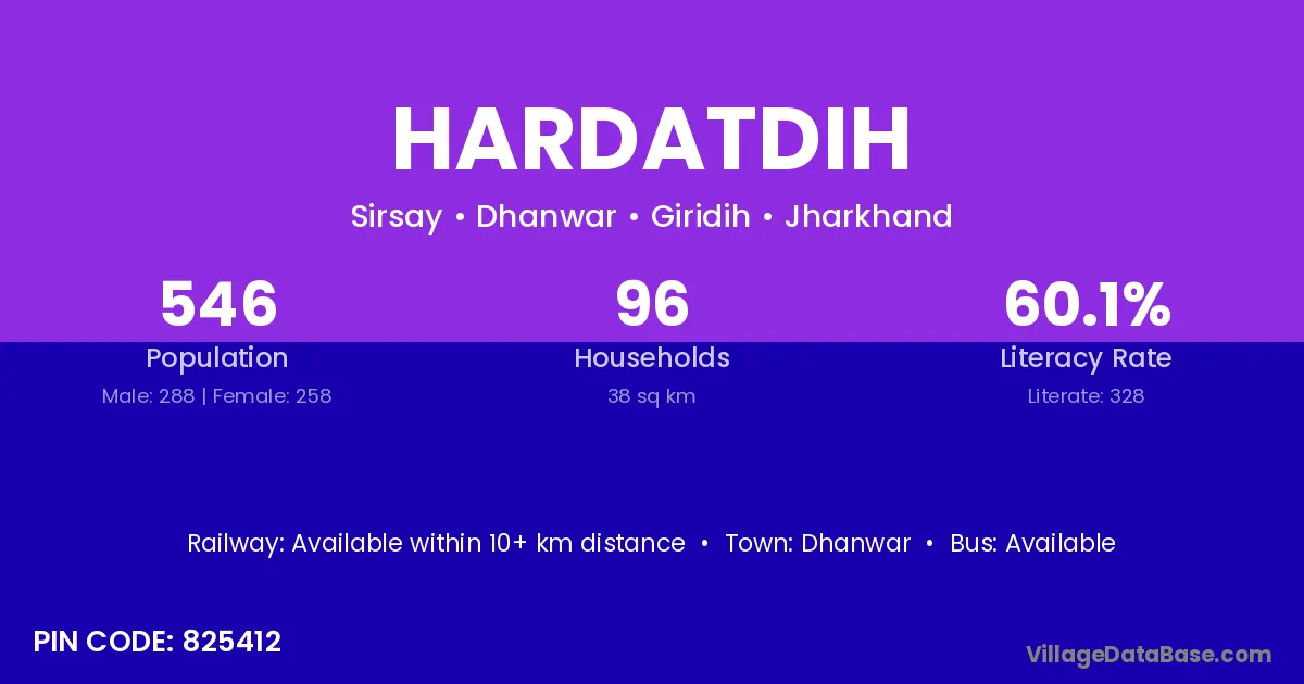 Hardatdih village has a total population of 546 people, of which 288 are males and 258 are females.