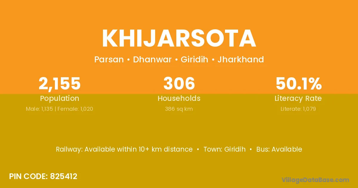 Giridih is the nearest town to Khijarsota village for major economic activities