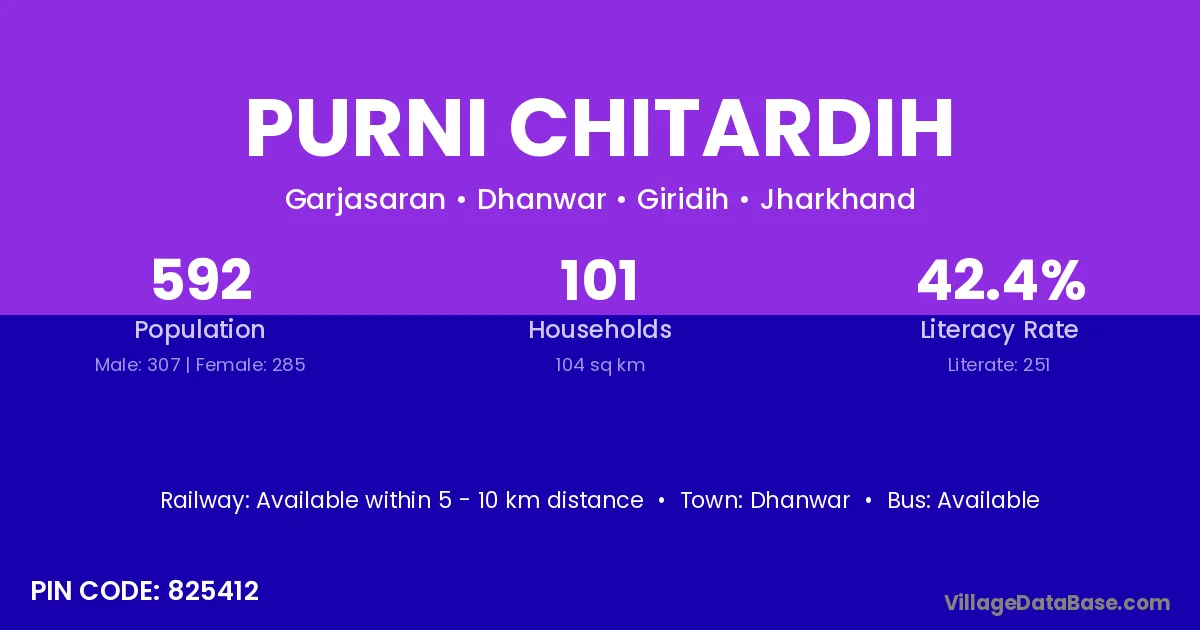 Purni Chitardih village has a total population of 592 people, of which 307 are males and 285 are females.