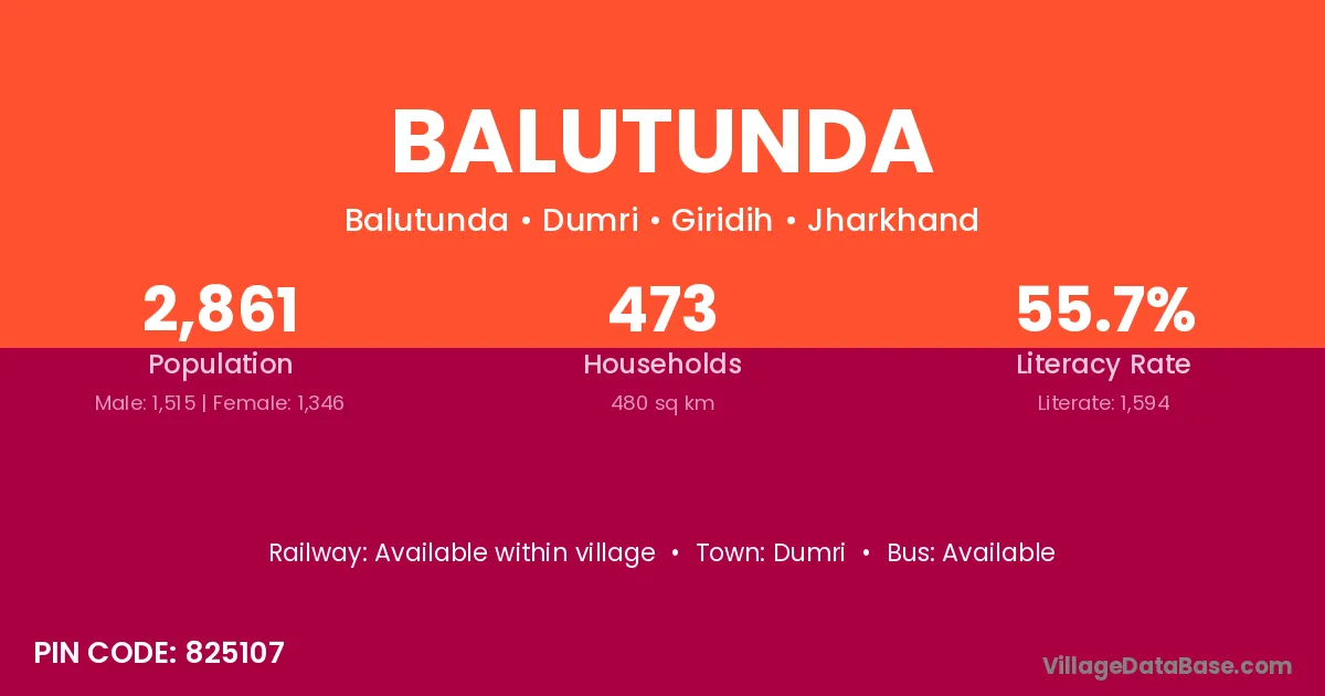 Balutunda village has a total population of 2,861 people, of which 1,515 are males and 1,346 are females.