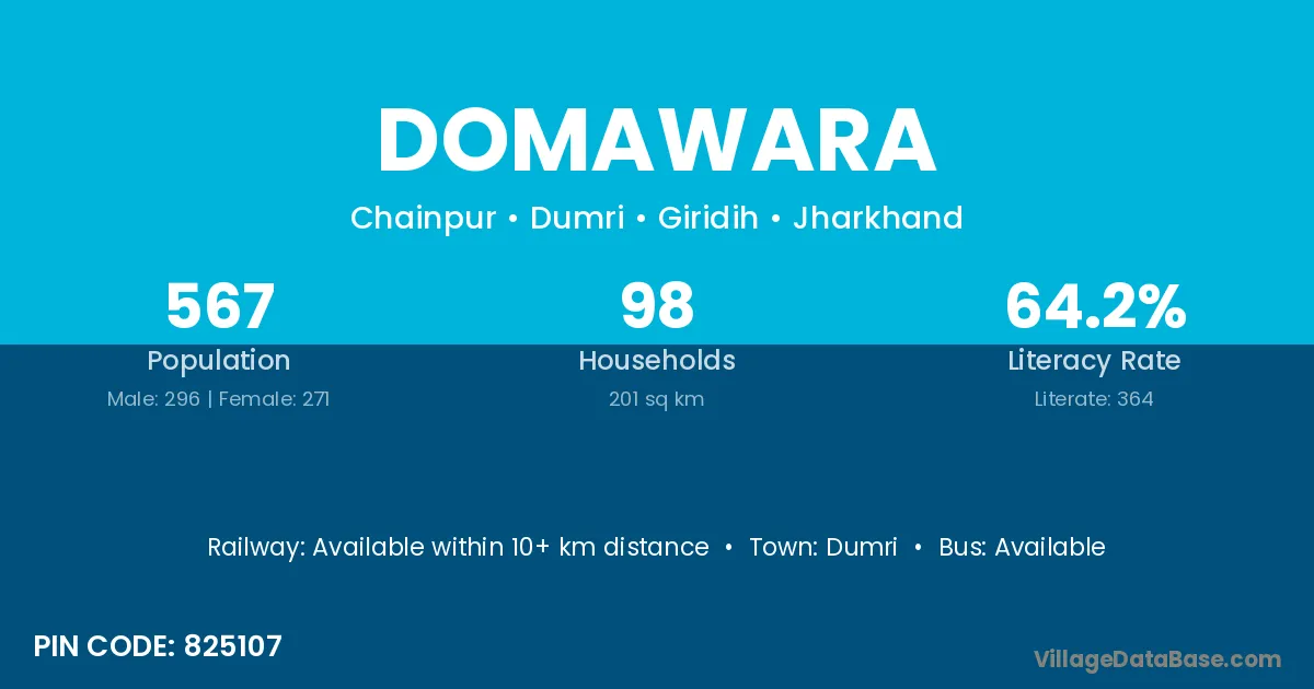 According to Census 2011 information, the village code of Domawara village is 825107.