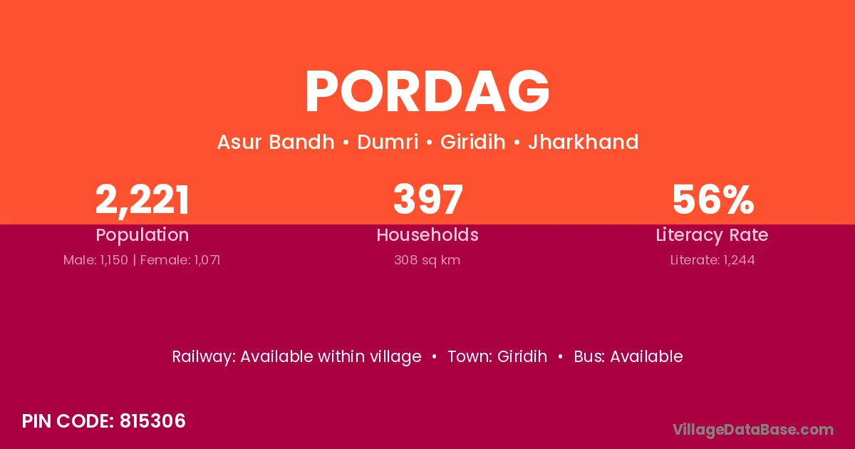 Giridih is the nearest town to Pordag village for major economic activities