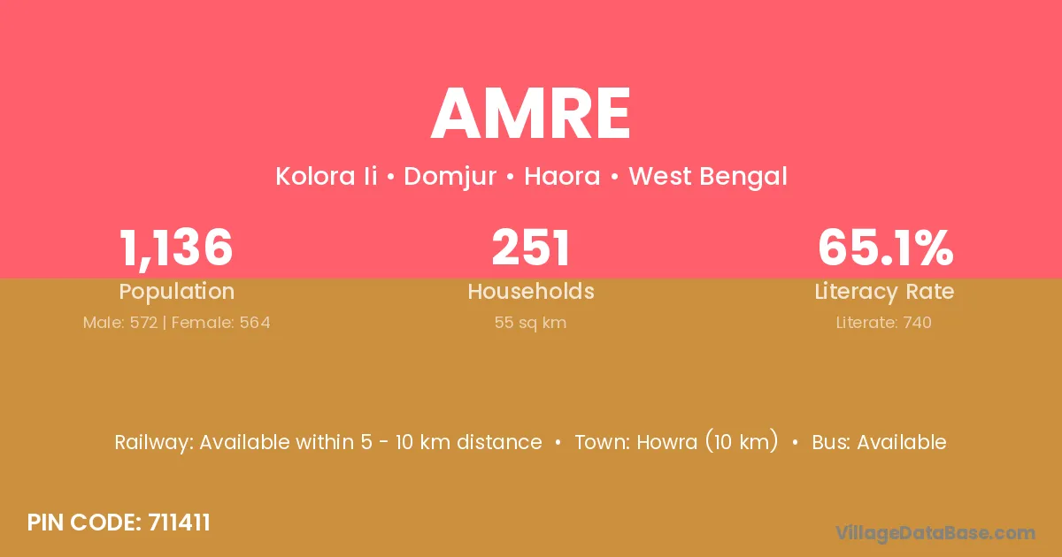 Amre village has a total population of 463 people, of which 235 are males and 228 are females.