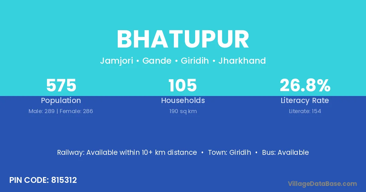 Giridih is the nearest town to Bhatupur village for major economic activities