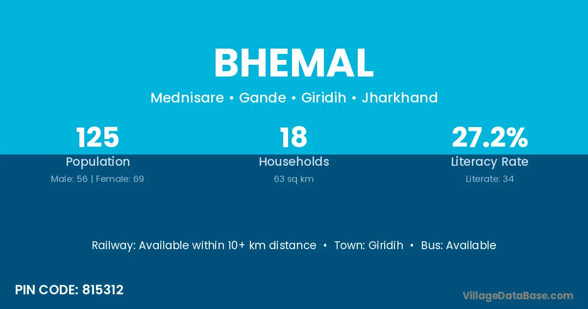 Giridih is the nearest town to Bhemal village for major economic activities