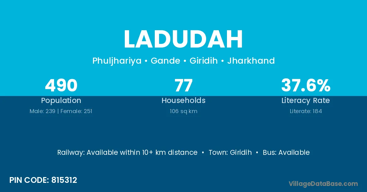 Giridih is the nearest town to Ladudah village for major economic activities