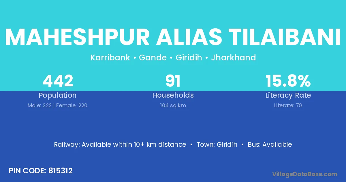 Maheshpur Alias Tilaibani village has a total population of 442 people, of which 222 are males and 220 are females.