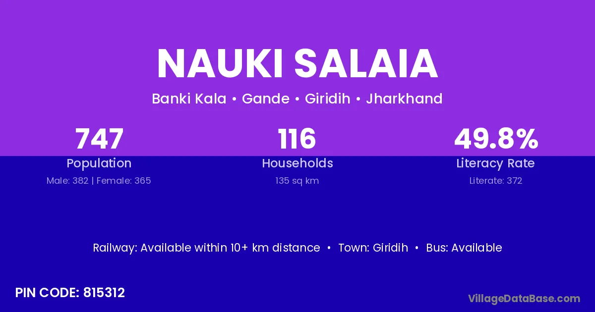 Nauki Salaia village has a total population of 747 people, of which 382 are males and 365 are females.