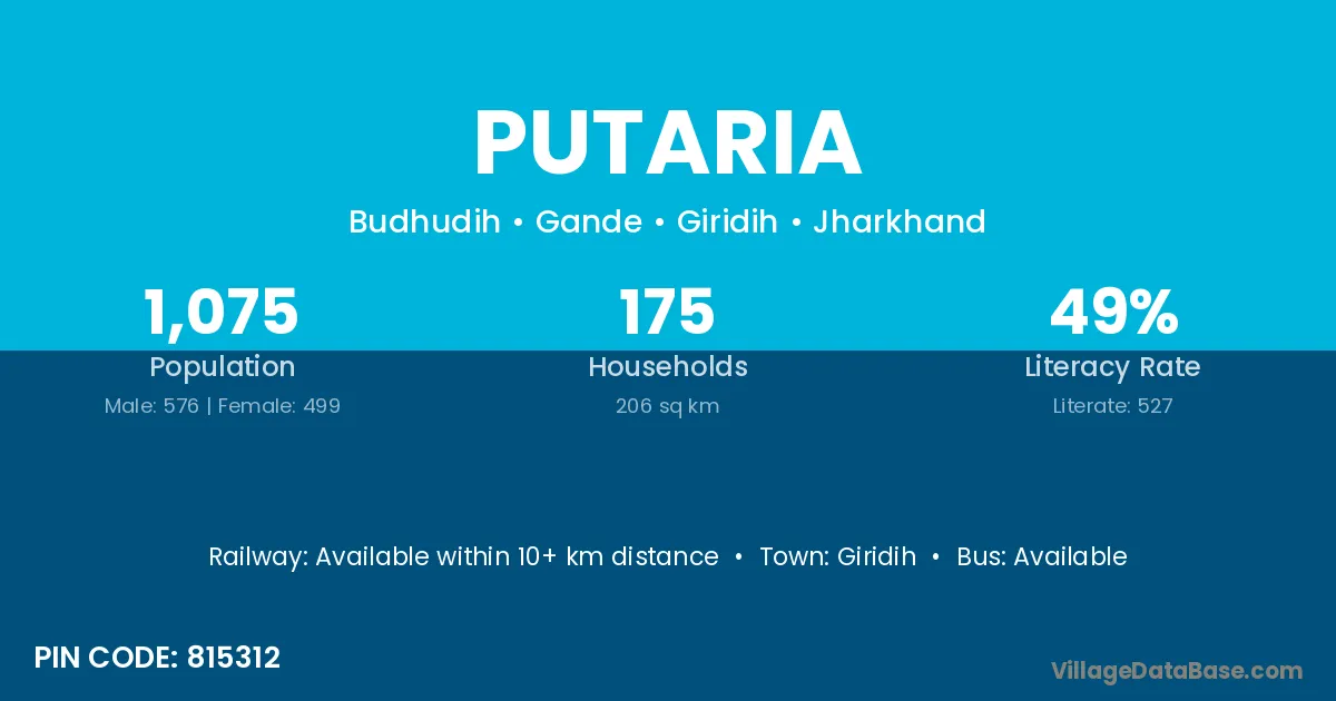 Giridih is the nearest town to Putaria village for major economic activities