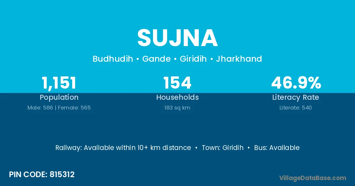 Sujna village has a total population of 1,151 people, of which 586 are males and 565 are females.