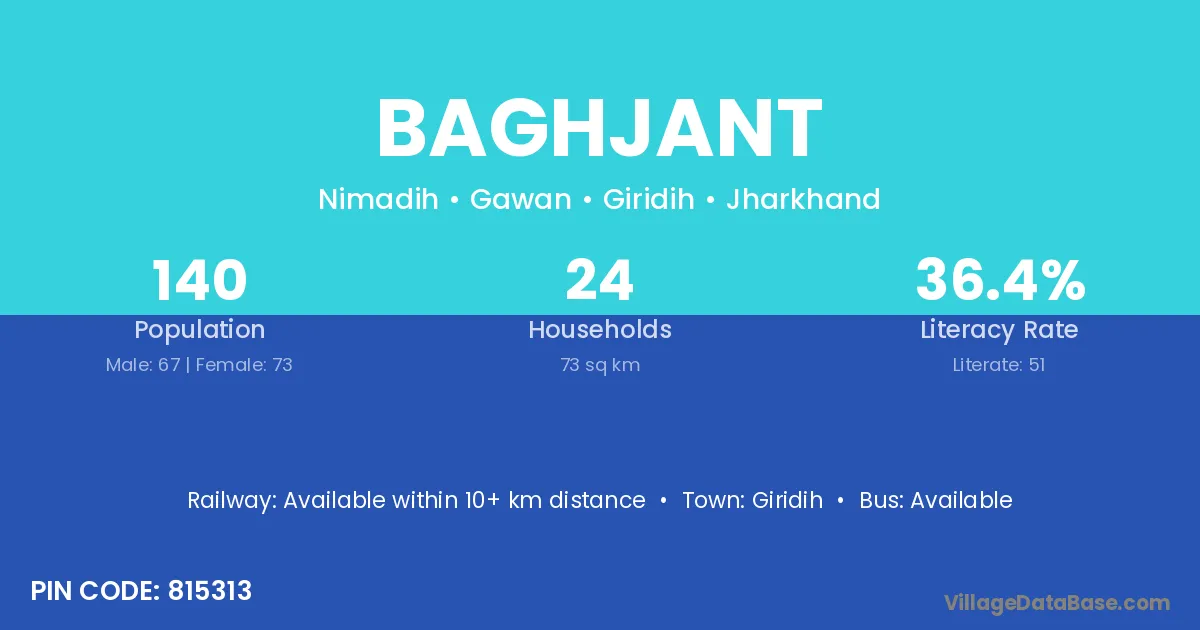 Baghjant village has a total population of 140 people, of which 67 are males and 73 are females.