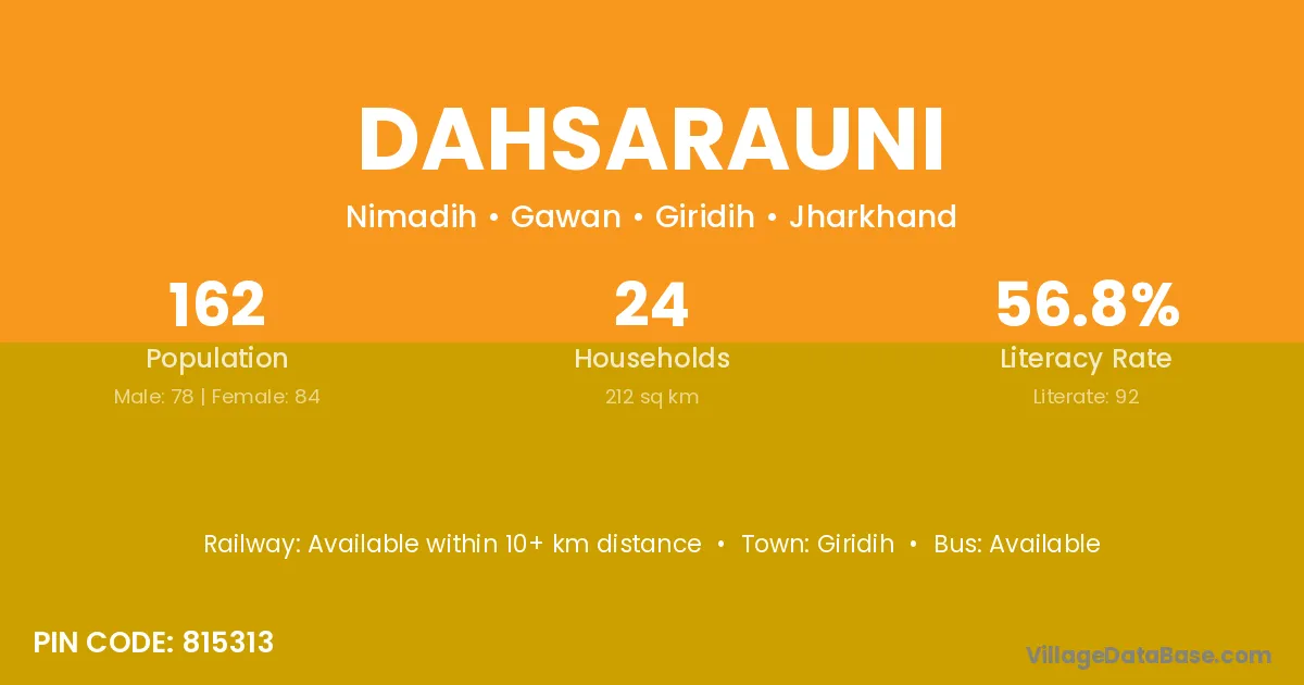 Giridih is the nearest town to Dahsarauni village for major economic activities