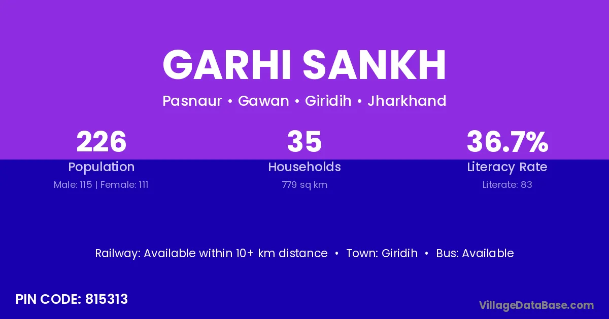 Giridih is the nearest town to Garhi Sankh village for major economic activities