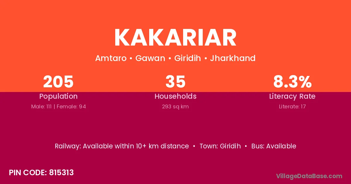 According to Census 2011 information, the village code of Kakariar village is 815313.