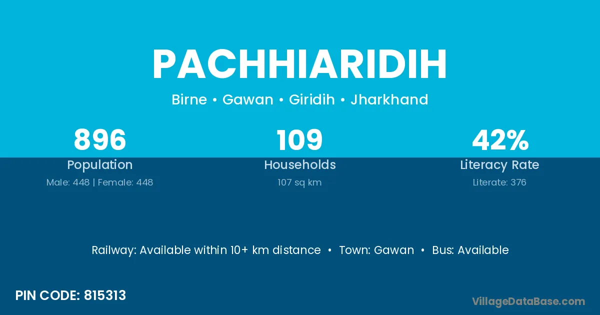 Pachhiaridih village has a total population of 896 people, of which 448 are males and 448 are females.