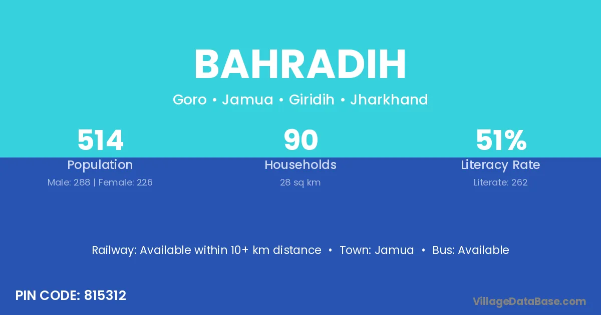 Jamua is the nearest town to Bahradih village for major economic activities