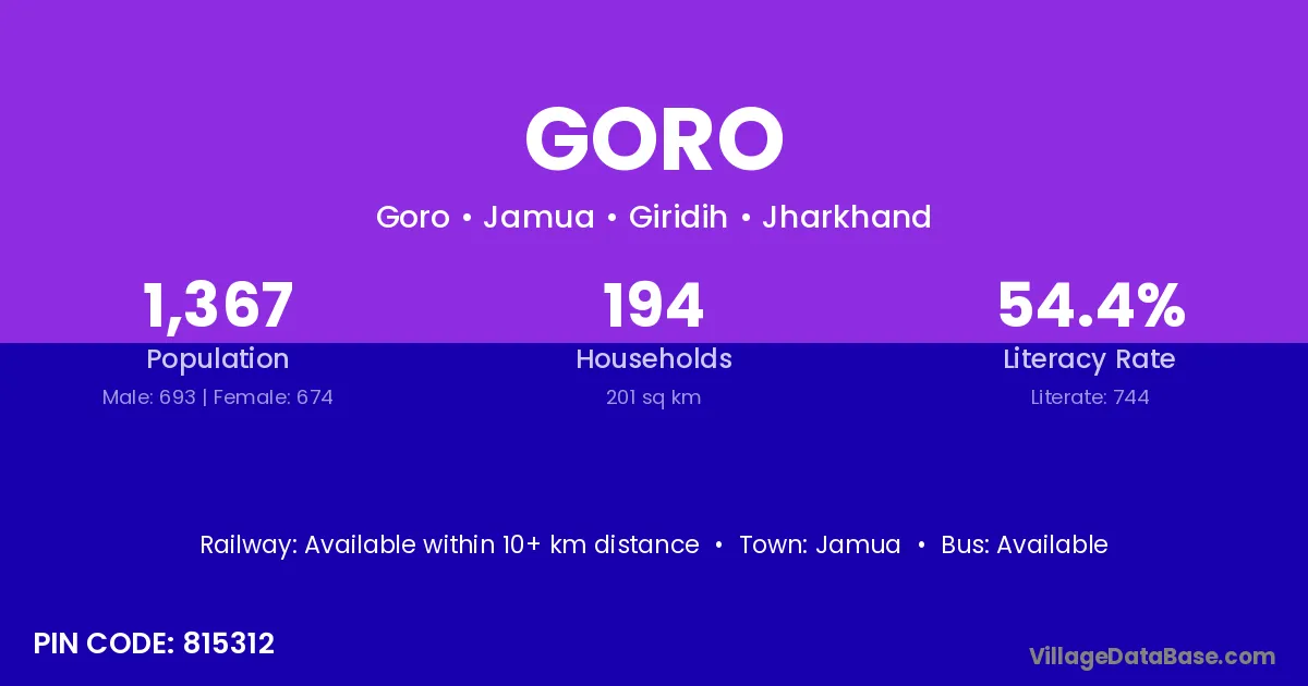 Goro village is located in the Jamua Subdivision of the Giridih district in Jharkhand .