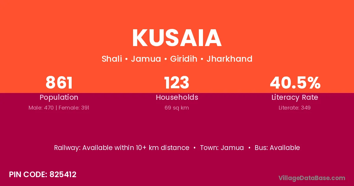 Kusaia village has a total population of 861 people, of which 470 are males and 391 are females.
