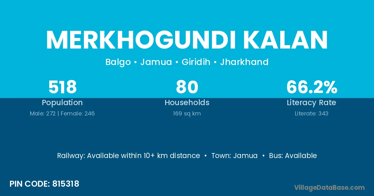 Jamua is the nearest town to Merkhogundi Kalan village for major economic activities