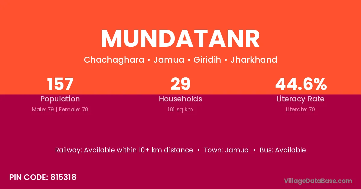 Mundatanr village has a total population of 157 people, of which 79 are males and 78 are females.