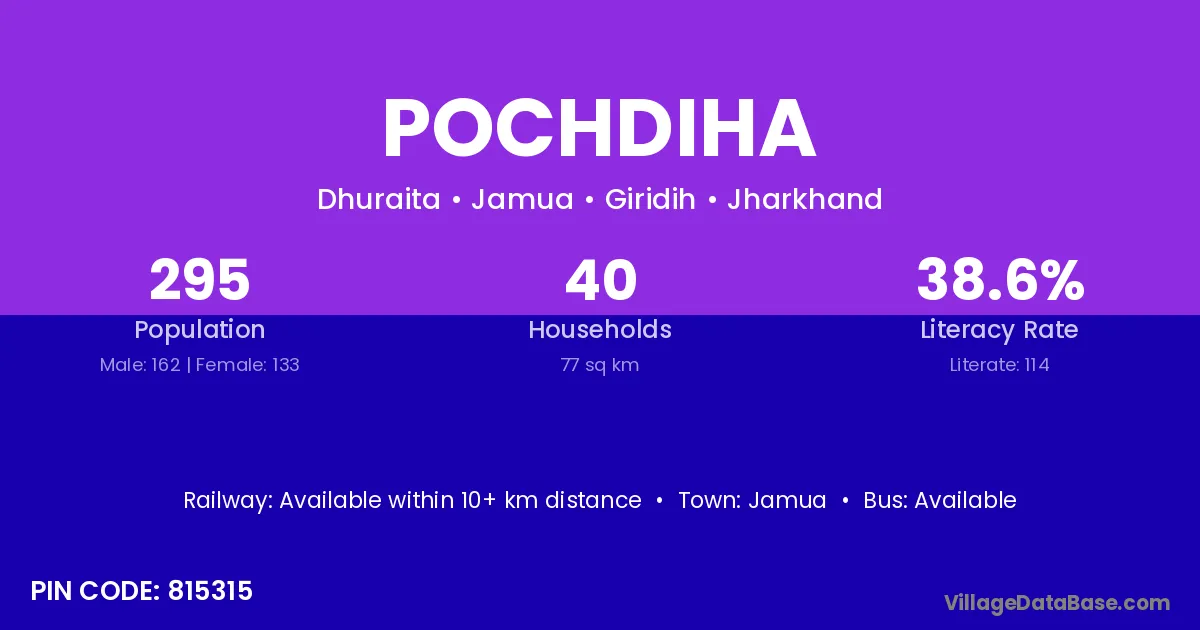Jamua is the nearest town to Pochdiha village for major economic activities
