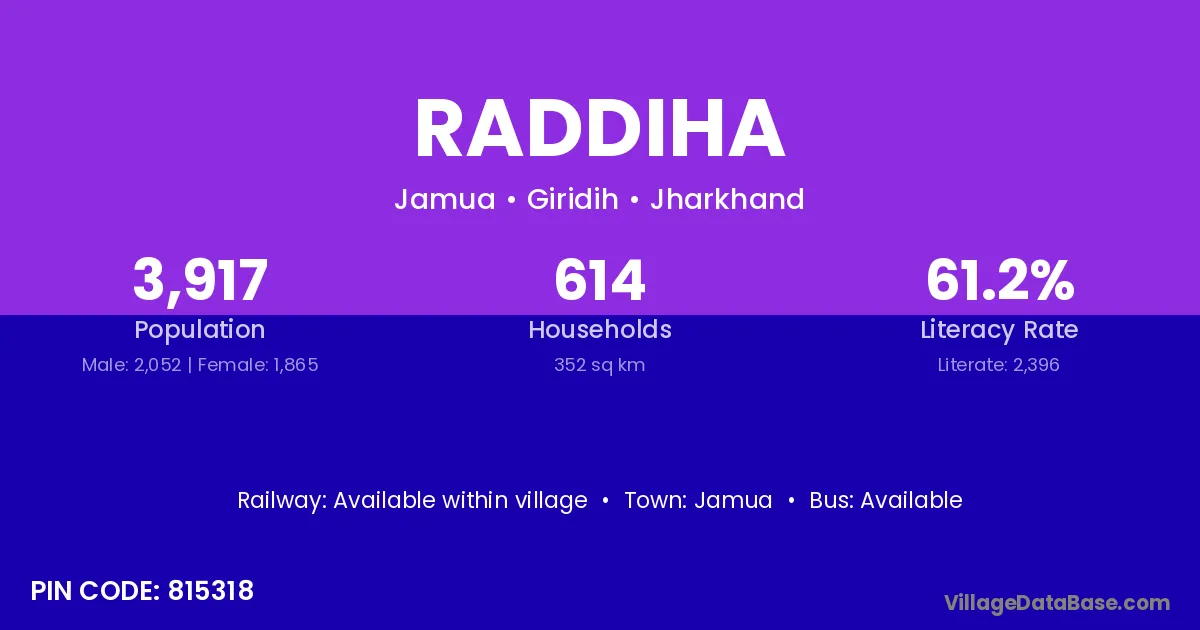 Raddiha village is located in the Jamua Subdivision of the Giridih district in Jharkhand .