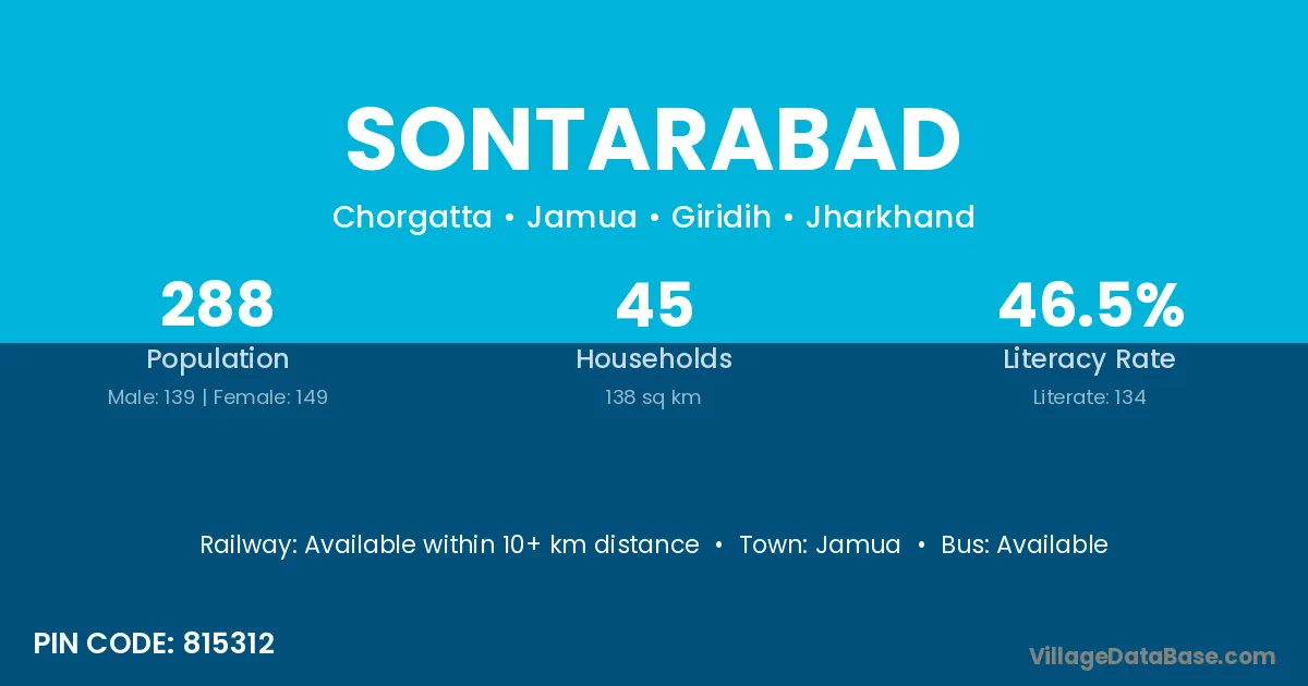 Jamua is the nearest town to Sontarabad village for major economic activities