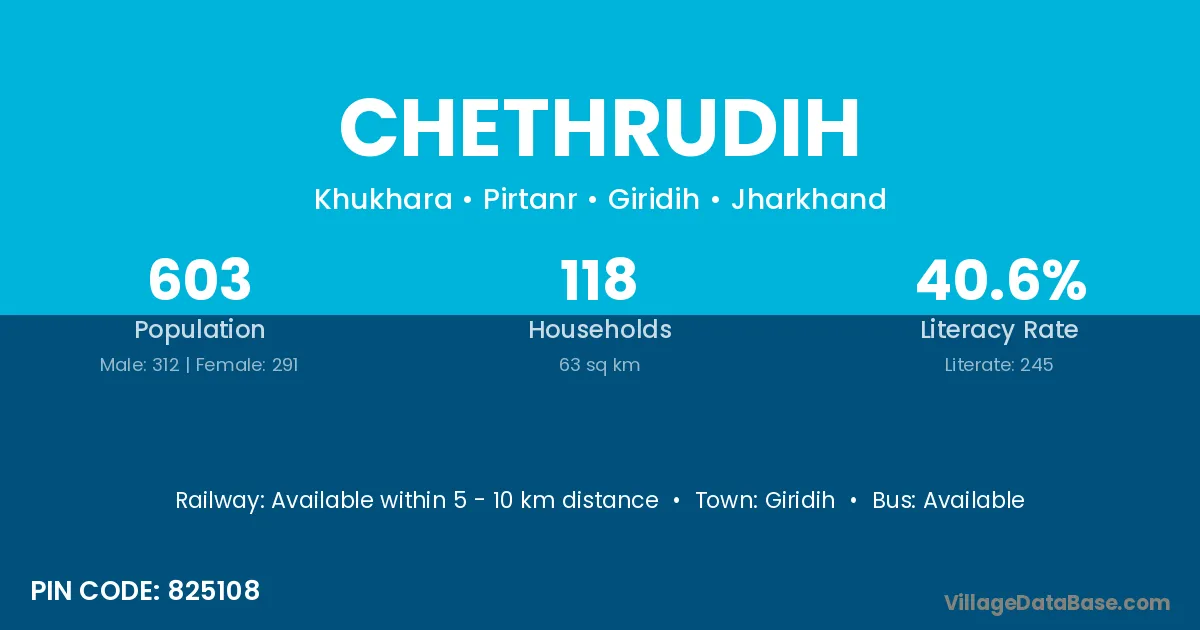 Giridih is the nearest town to Chethrudih village for major economic activities