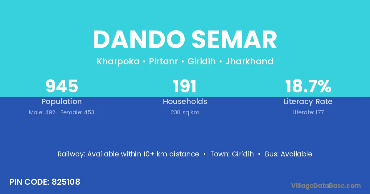Giridih is the nearest town to Dando Semar village for major economic activities