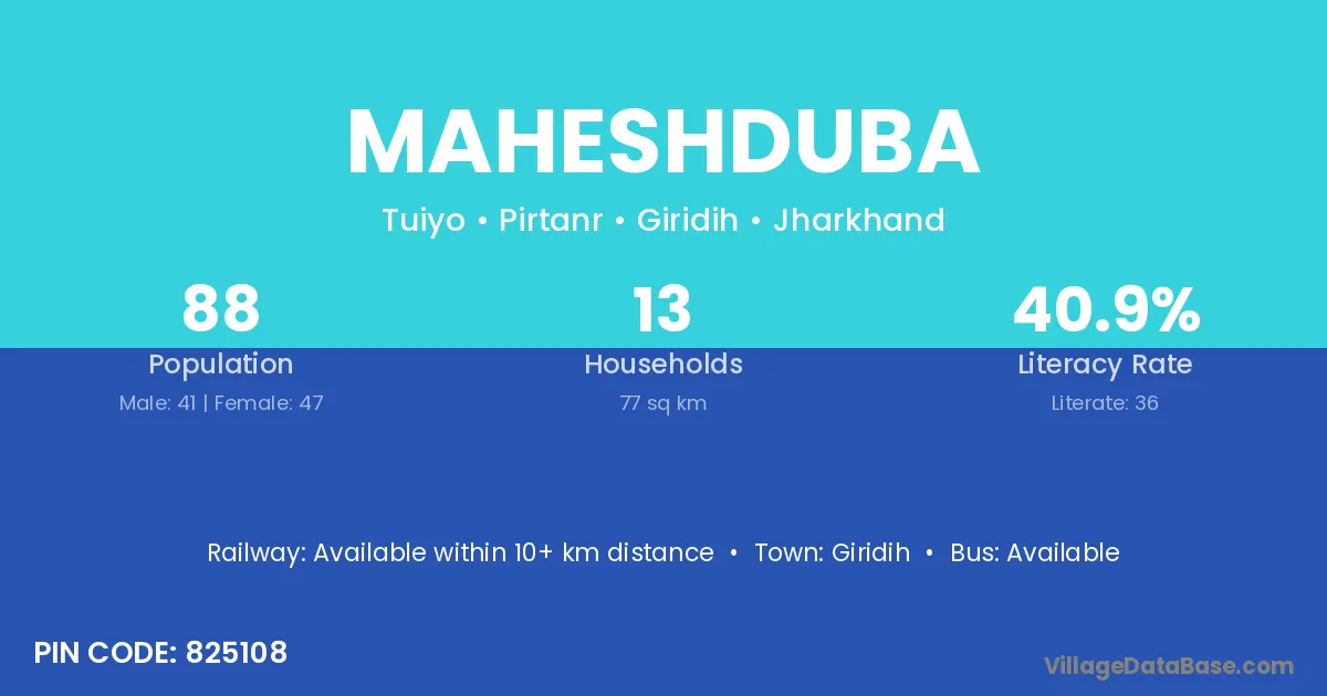 Giridih is the nearest town to Maheshduba village for major economic activities