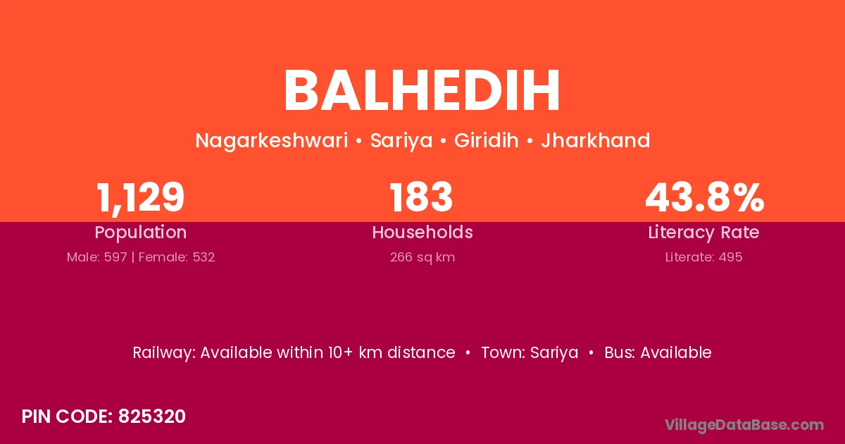 Balhedih village has a total population of 1,129 people, of which 597 are males and 532 are females.