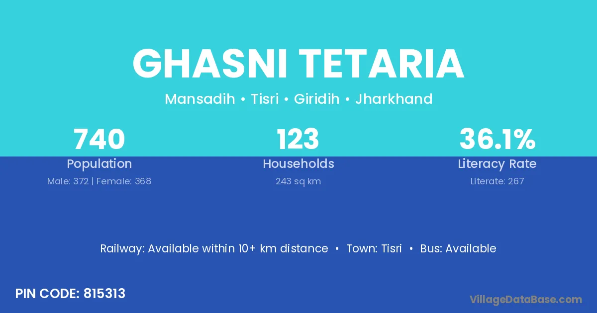 Ghasni Tetaria village is located in the Tisri Subdivision of the Giridih district in Jharkhand .