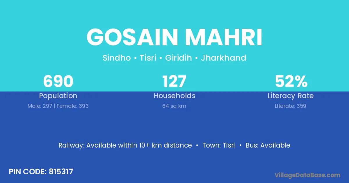 Gosain Mahri village has a total population of 690 people, of which 297 are males and 393 are females.