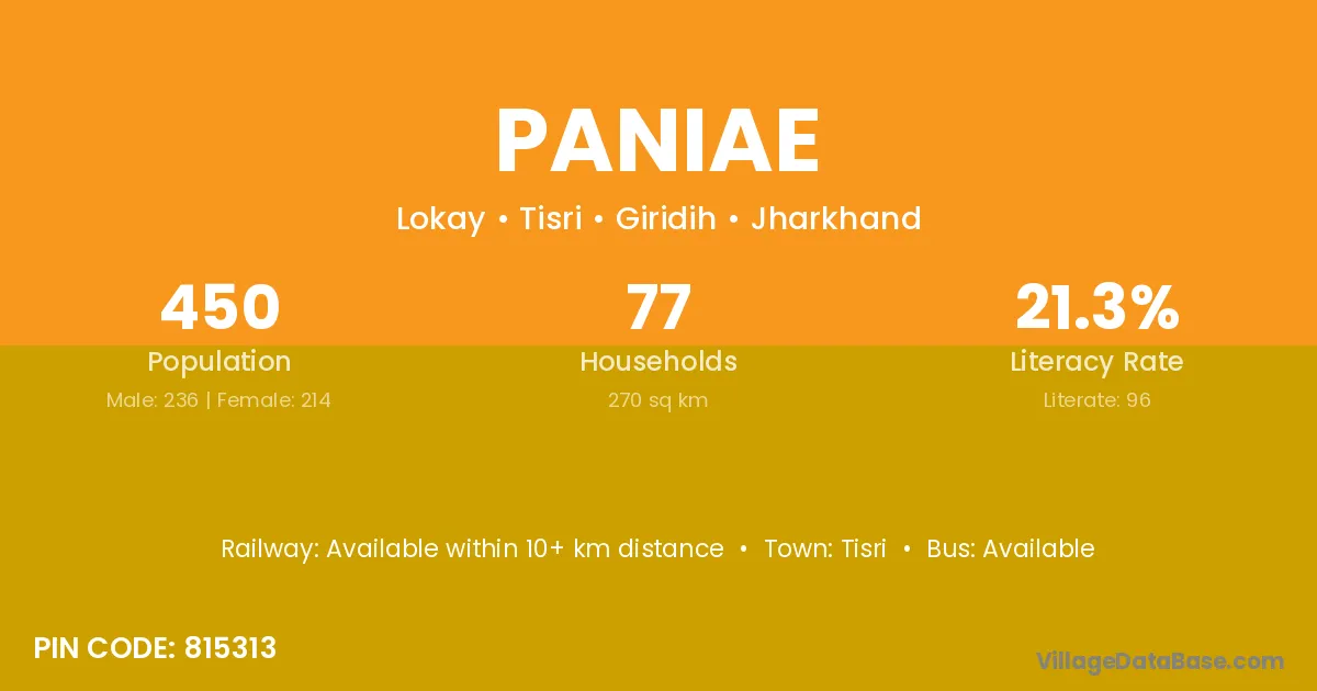 Paniae village has a total population of 450 people, of which 236 are males and 214 are females.