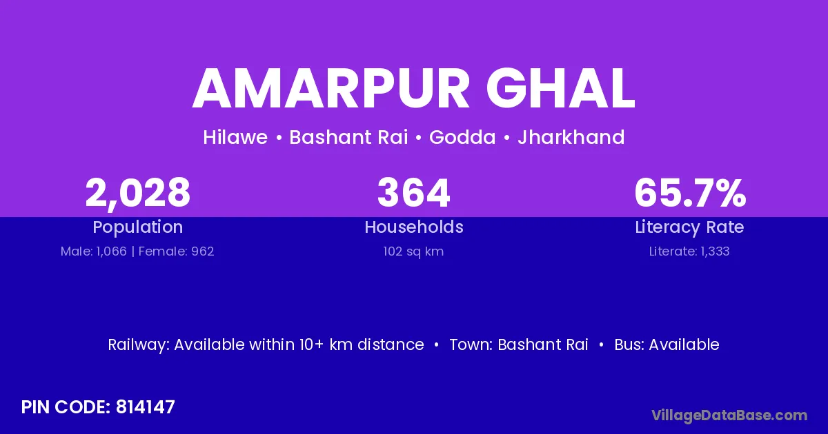 Amarpur Ghal village has a total population of 2,028 people, of which 1,066 are males and 962 are females.