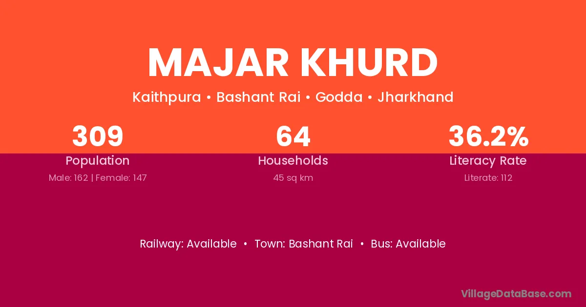Majar Khurd village has a total population of 309 people, of which 162 are males and 147 are females.