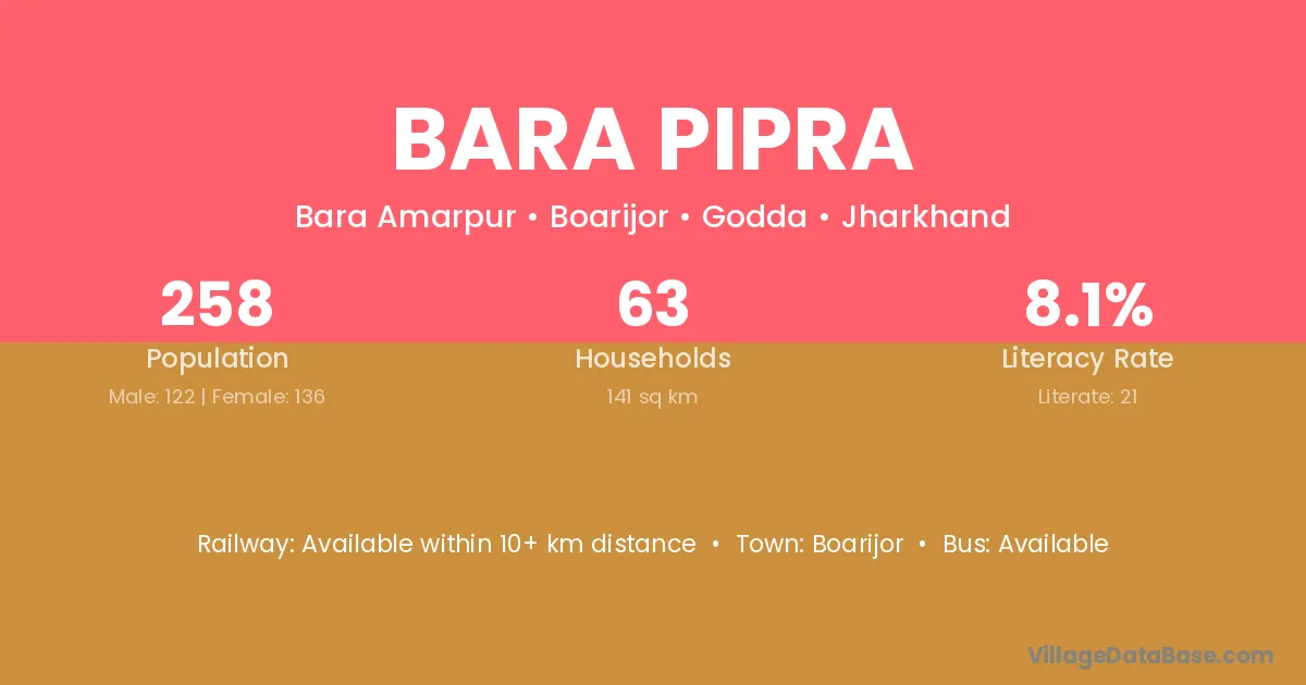 Boarijor is the nearest town to Bara Pipra village for major economic activities