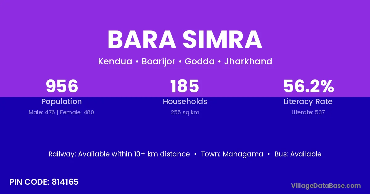 Bara Simra village has a total population of 956 people, of which 476 are males and 480 are females.